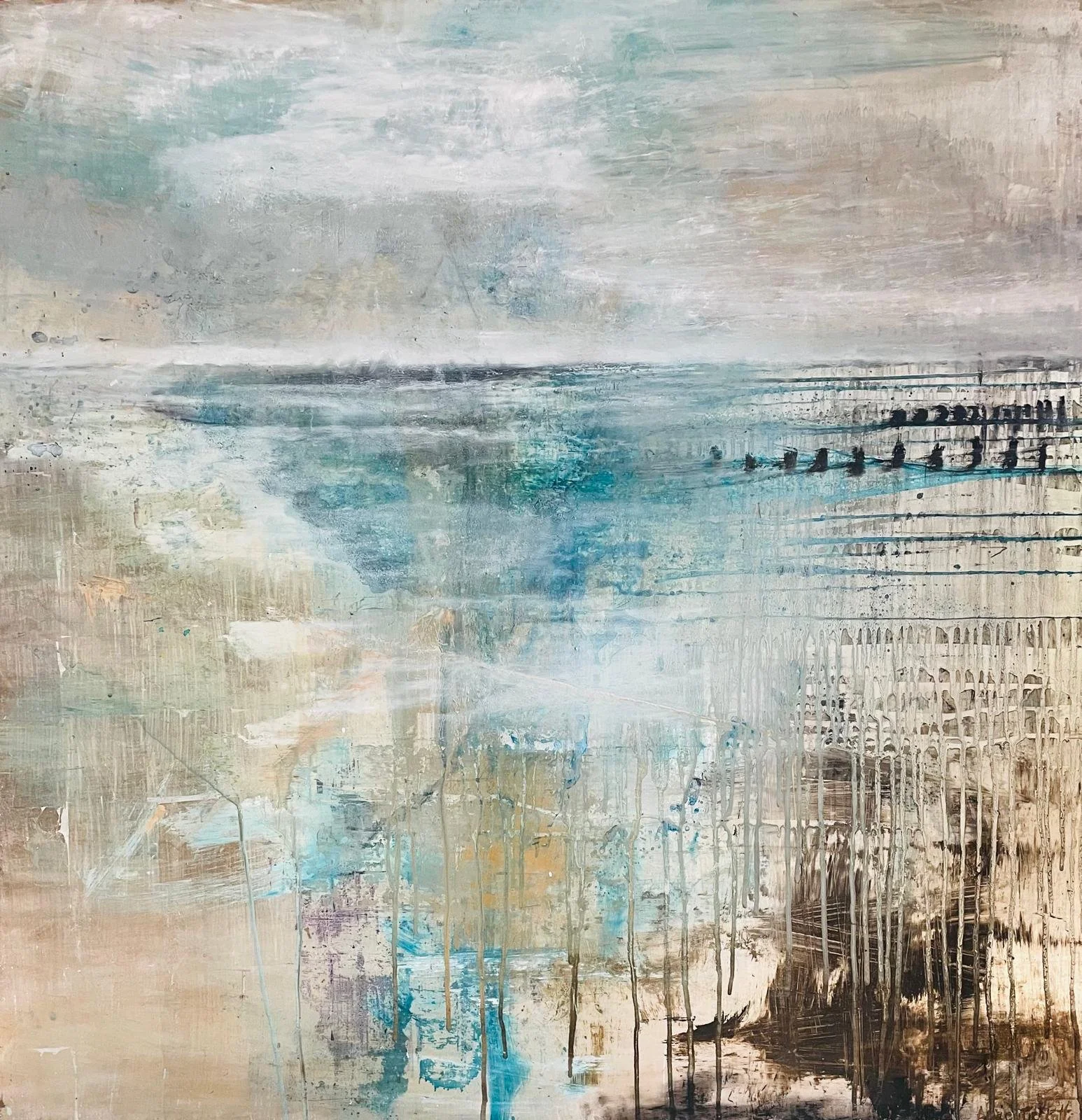 In contrast, Melanie Cormack-Hicks's paintings are imbued with the vibrant energy of the landscapes she cherishes. Inspiration comes from her previous home in the Cotswolds and, following a move, the rolling hills and stunning coastline of Sussex, capturing the changing light and moods of woodlands, meadows, and coastal scenes. Her expressive mark-making and use of colour convey the emotional resonance of these environments, inviting viewers to experience the landscapes through her eyes.