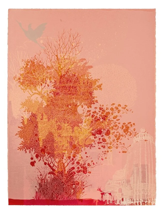 She is particularly inspired by the 'Devakads' (Sacred Groves) found in these regions and the stories and mythologies that surround them. The resulting drawings, paintings and prints seek to explore and highlight the biodiversity as well the inherent wild mystery underlying the existence of these spaces.